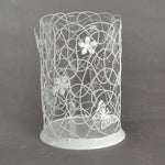 Portavelas grande de metal blanco con mariposas cm13x13h20