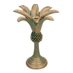 Portavelas resina oro verde palma redondo 1p cmø15,5h20,5