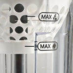 La picadora está equipada con un vaso de 700 ml completamente desmontable y de rápida limpieza, para una máxima practicidad en la cocina. Además, cuenta con doble seguridad operativa y pies antideslizantes para mayor estabilidad.